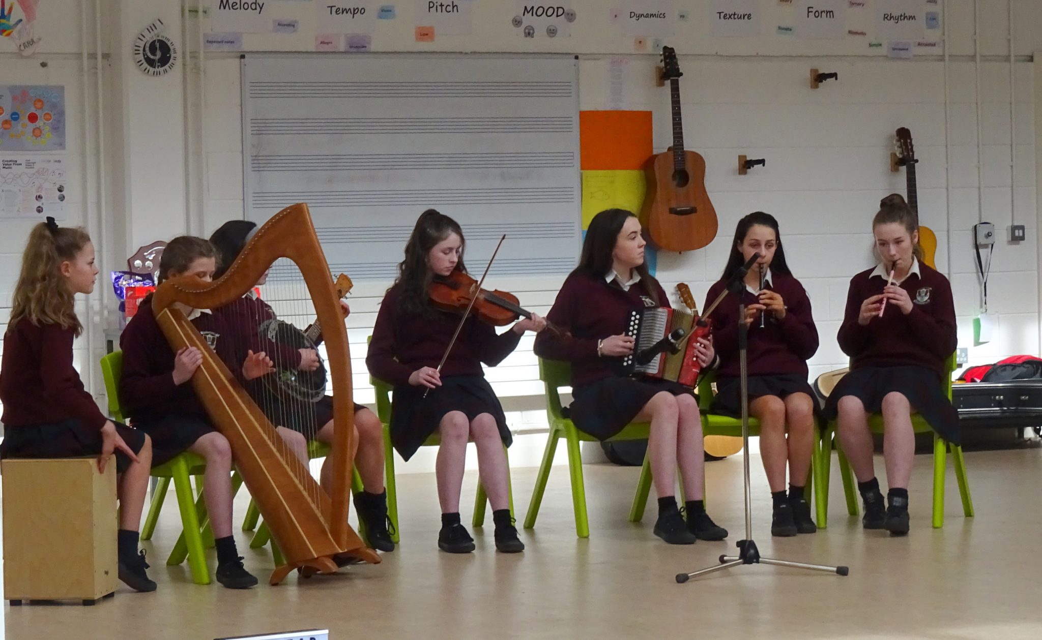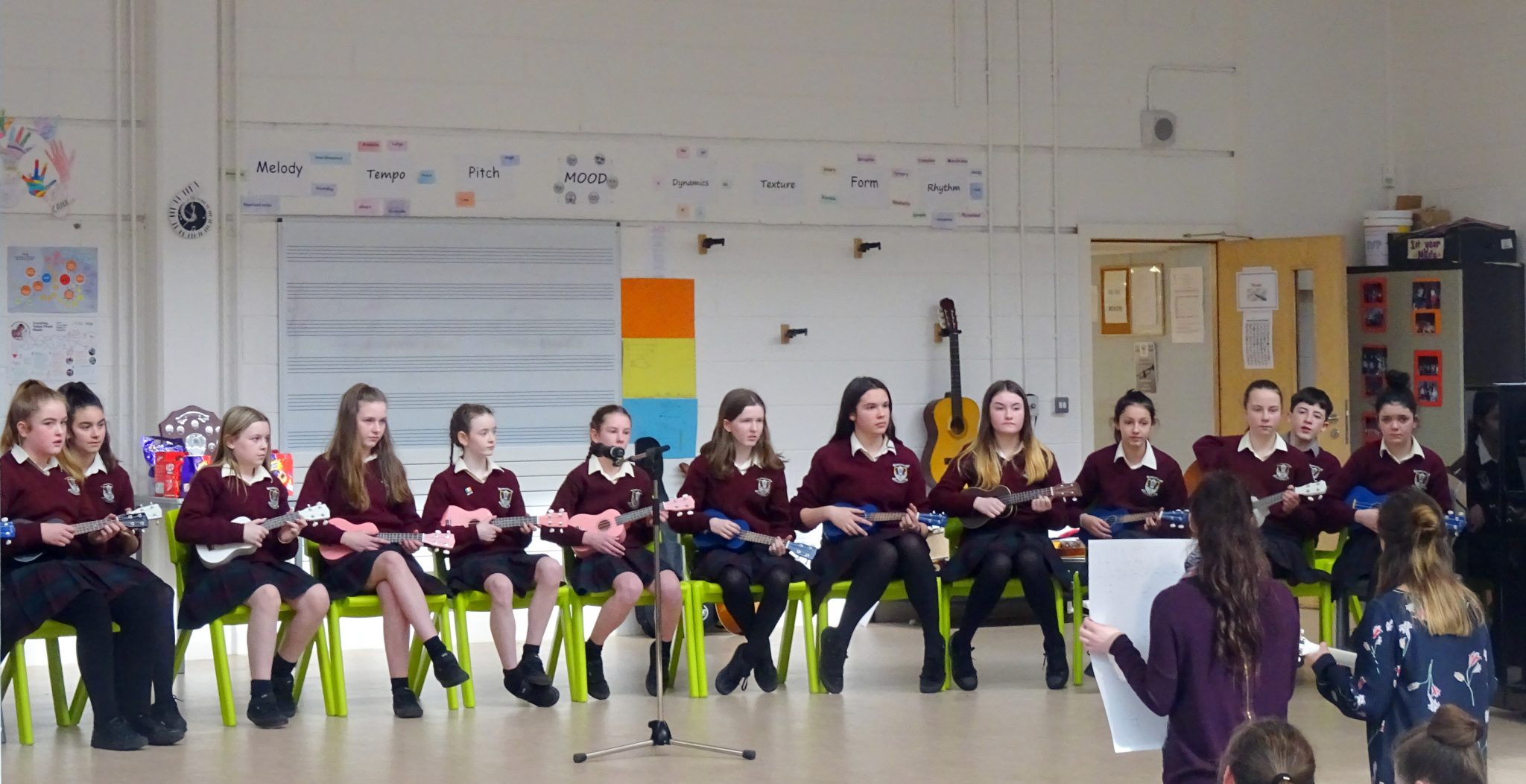 The Trad Group made up of Emma Colleran, Isobel Coggins, Ella Gormley, Shannon Hibbitt, Alice Curran, Treasa McDermott and Maia Phillips finished 2nd for their selection of Irish jigs. Serena Squire and Shannon Morgan (Ukulele) came 3rd both singing ‘Riptide’ with ‘Haunting Harmonies’.