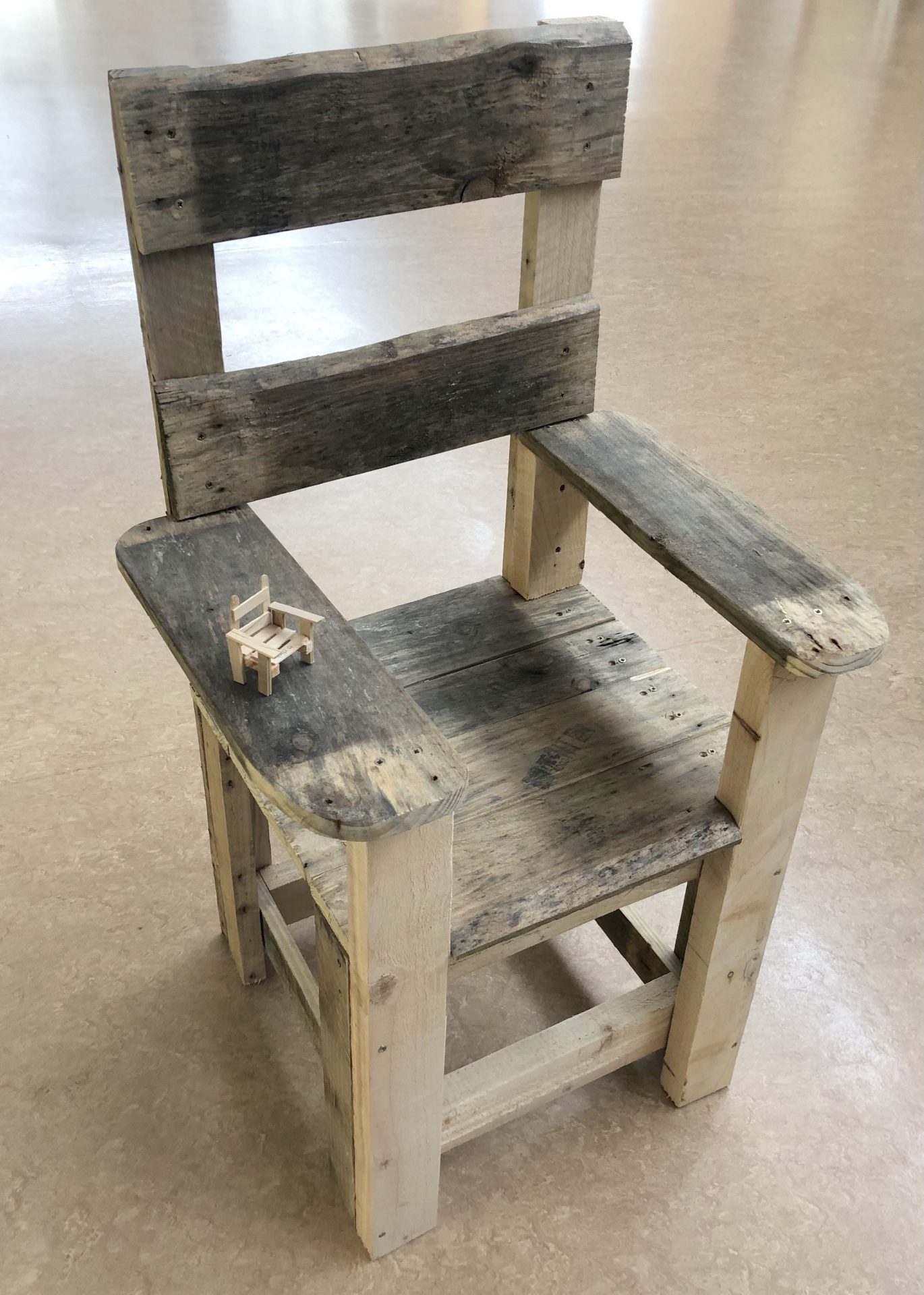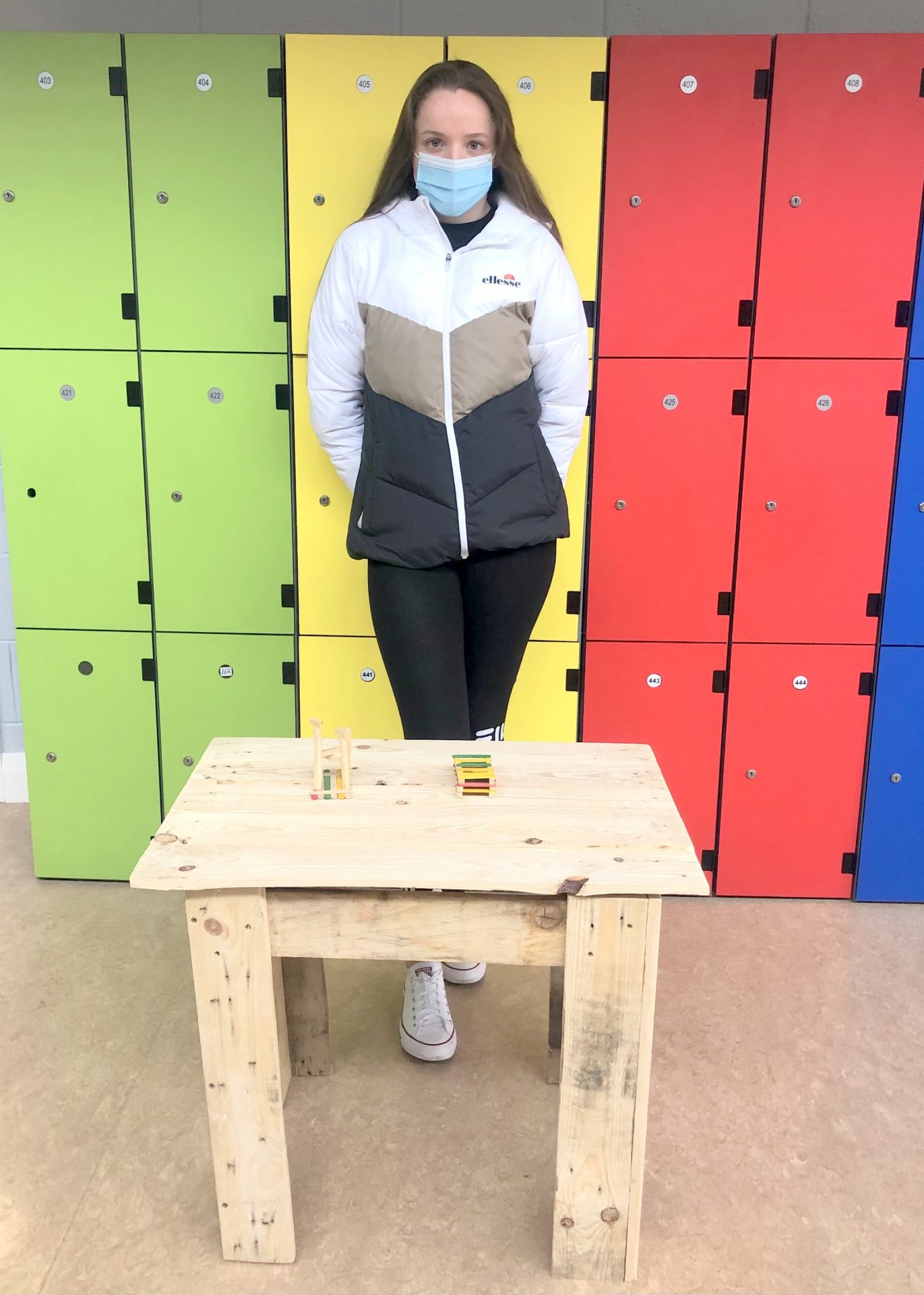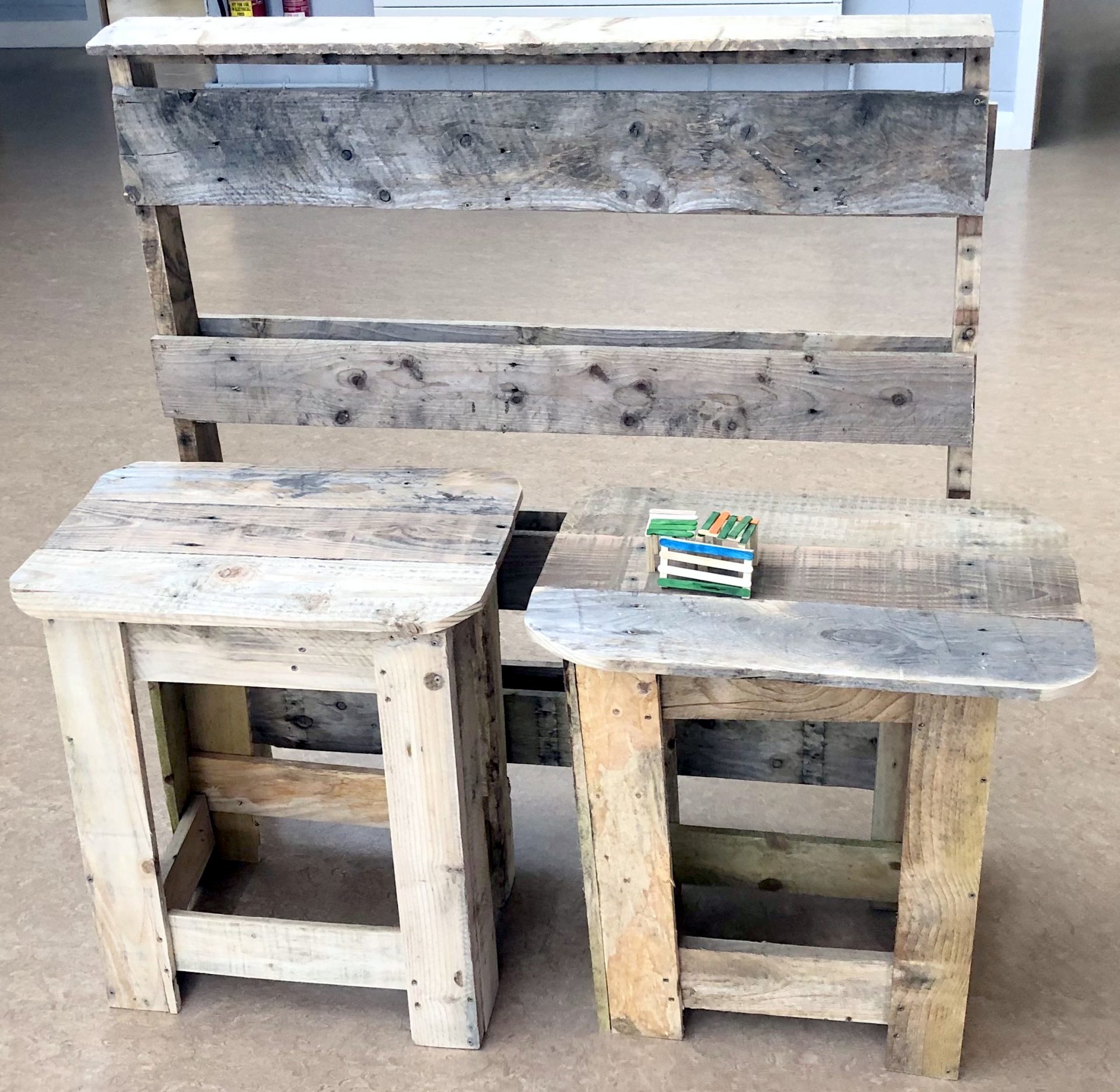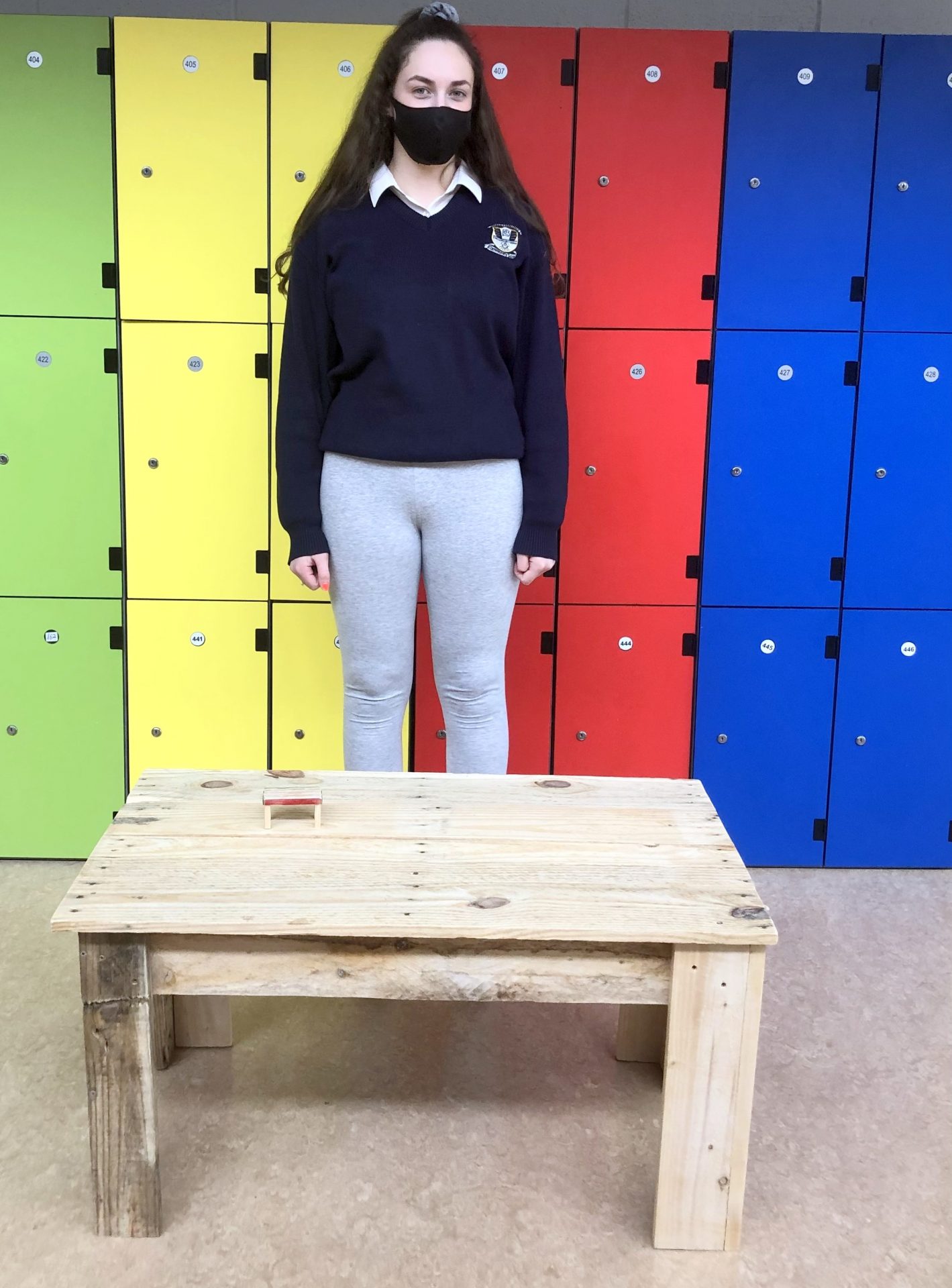 Mr McHugh’s LCA2 students proudly displaying their sustainable furniture projects. The artefacts were designed by the students themselves and manufactured entirely from recycled wood pallets.