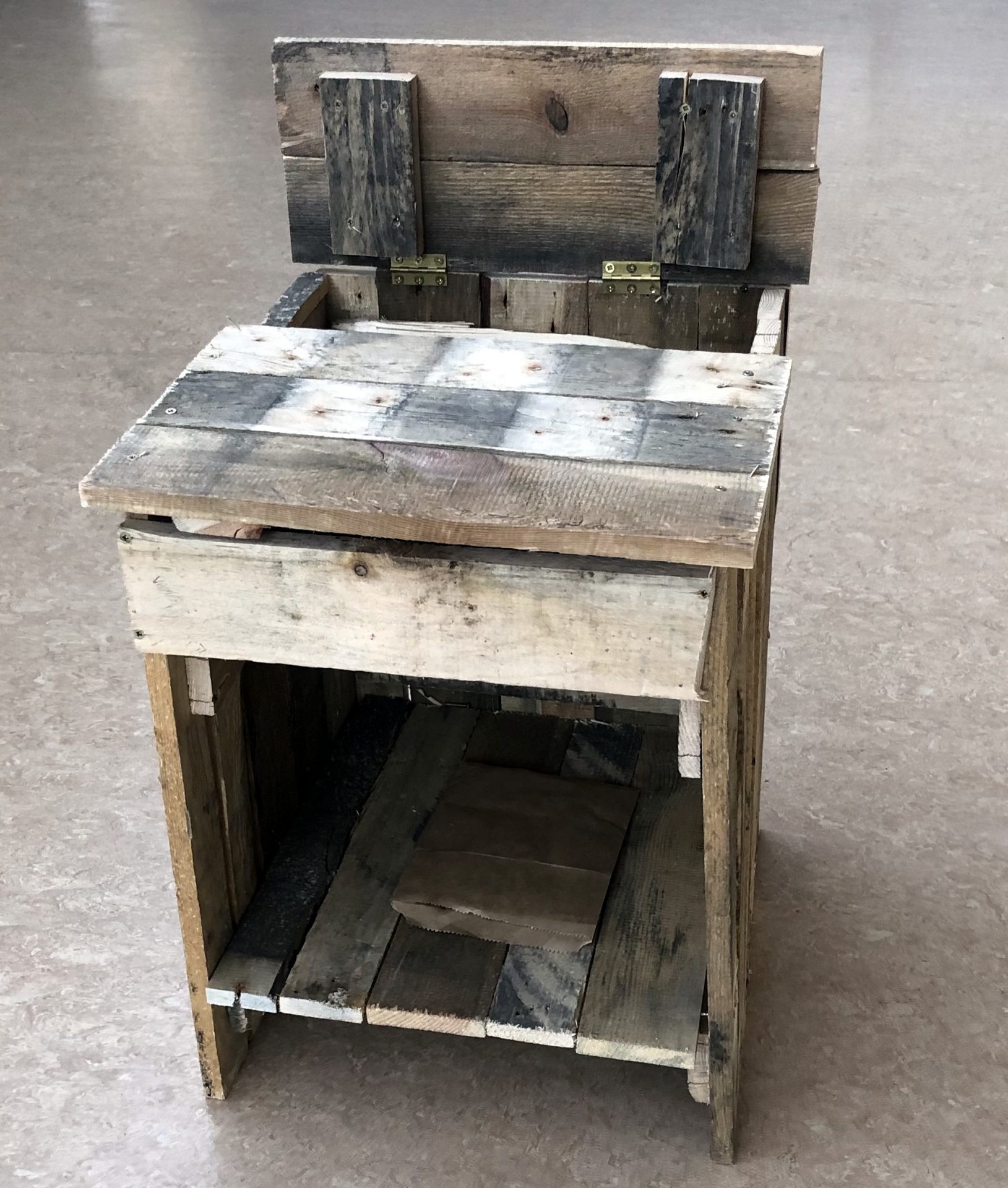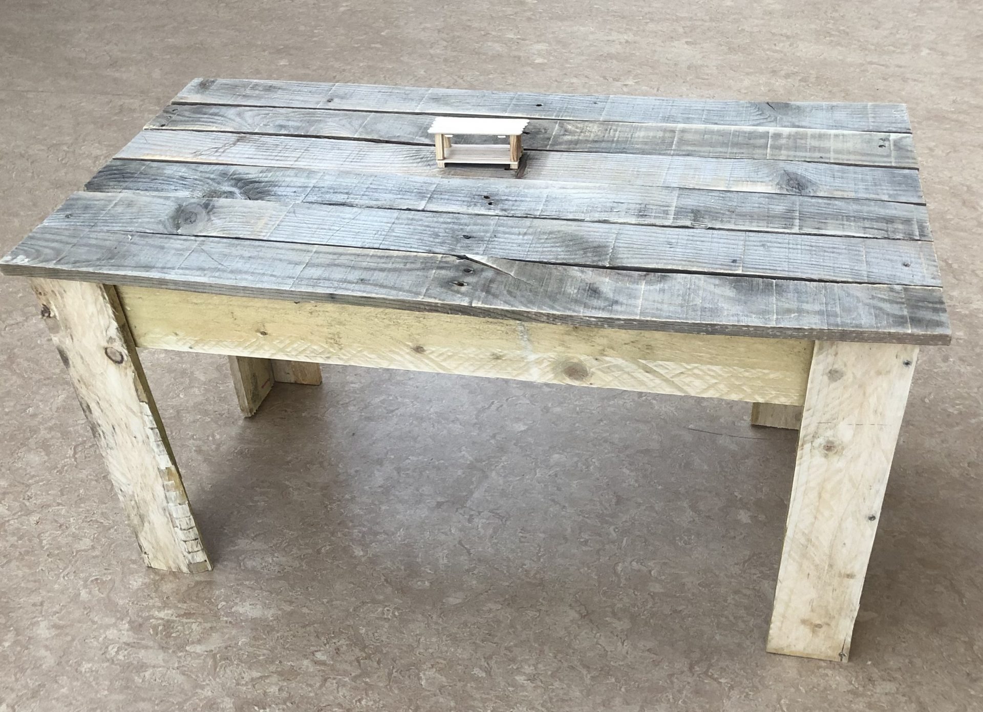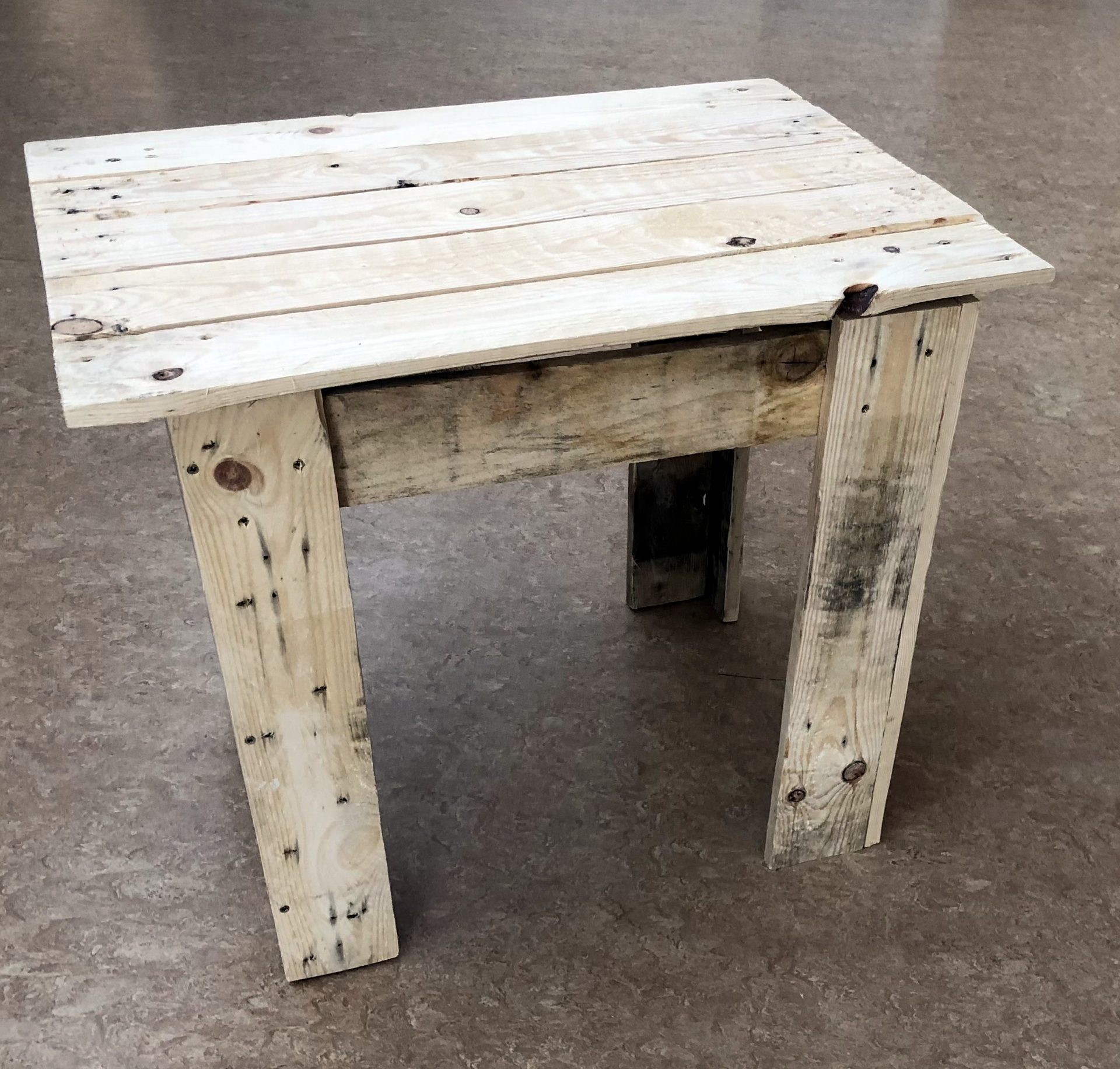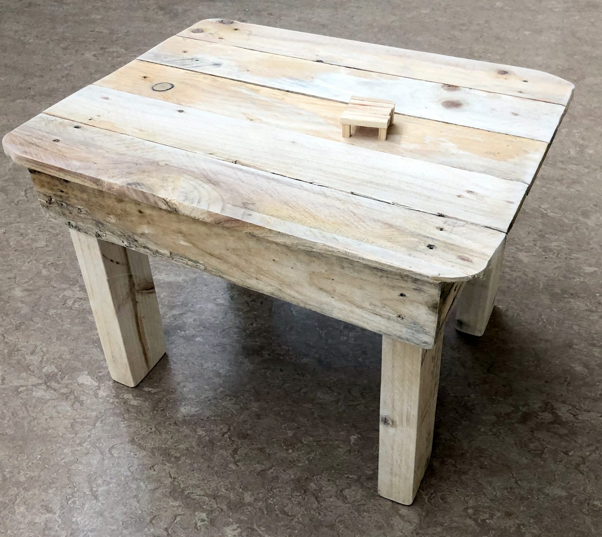 Mr McHugh’s LCA2 students proudly displaying their sustainable furniture projects. The artefacts were designed by the students themselves and manufactured entirely from recycled wood pallets.