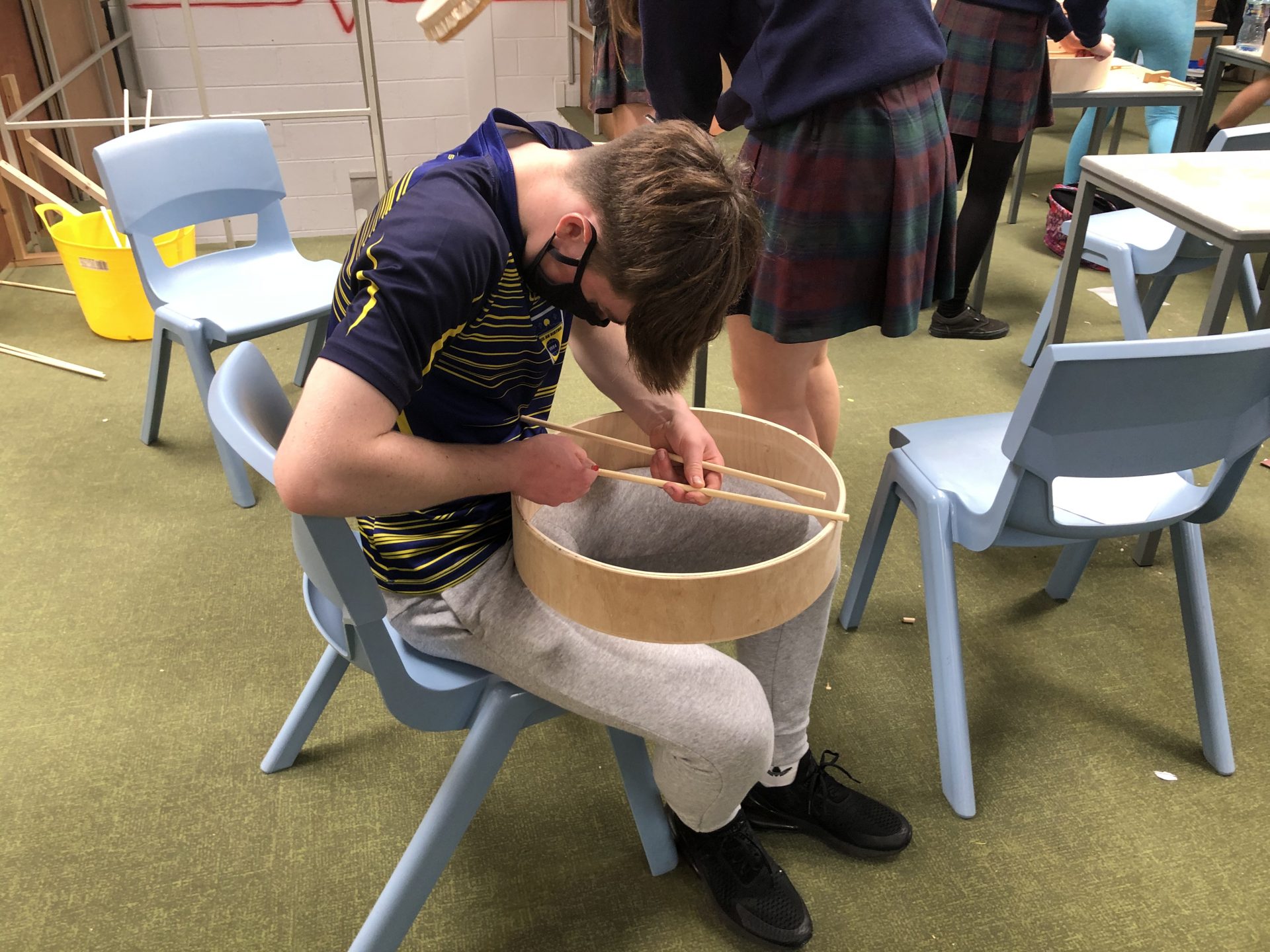 Our TY students enjoyed a brilliant two day workshop from the legendary bodhran craftsman, Michael Vignoles. The students got the opportunity to design and make their own bespoke bodhran and were given a tutorial on how to play this iconic Irish instrument.